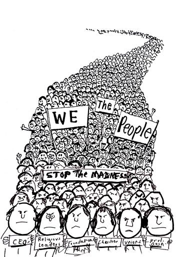 Приятели, Това е национална извънредна ситуация. Тръмп е извън релси. Неговите бандити от ICE и граничния патрул са се развихрили в Америка. Хаосът в Минеаполис ще се влоши и ще се случи и другаде. Вчера някой друг беше прострелян там. Неговата армия е разпръсната по света. Сега Венецуела и Карибите, всеки момент Иран, Куба или Гренландия. (Европейските държави в момента изпращат войски в Гренландия, вероятно за да я защитават от Америка на Тръмп.) Може да се чувствате безпомощни – безсилен наблюдател на този ураган от насилие и глупост. Може би изпитвате онзи вид отчаяние, което обездвижва мозъка и притъпява сетивата. Може да искате да крещите, но не можете да намерите глас, защото сте толкова шокирани и уплашени. Моля ви, не се поддавайте на безпомощност, отчаяние или страх. Нужен си. Отчаяно. Какво повече можете да направите освен да протестирате, да се обаждате на членовете на Конгреса и (ако можете да си го позволите) да пишете чекове на кандидати, които могат да прехвърлят места? Останете политически ангажирани, но не чакайте Демократическата партия да си възвърне почтеността, нито се надявайте, че Републиканската партия ще открие своята почтеност. Ние излизаме отвъд партийната политика. Ето какво можете да направите още : Мобилизирайте работодателите си, организациите си и конгрегациите си – където и да работите, във всяка група, на която членувате – и ги накарайте да използват влиянието си, за да сложат край на това варварство. Организирайте своите колеги, пенсионери, възпитаници и членове на енорията. Накарайте ги да ви помогнат да окажете натиск върху попечители, директори и ръководители на всеки голям университет, професионална асоциация, благотворителна организация и фондация. Всеки корпоративен изпълнителен директор или управляващ директор. Всеки религиозен лидер. Накарайте всички, които имат официална власт в тази нация, да говорят ясно и убедено срещу случващото се и да се ангажират, както и своите организации, с прекратяването на това бедствие. Помогнете им да разберат, че мълчанието пред лицето на тази катастрофа е съучастие. Че вече няма извинение за тях да бъдат „разумно предпазливи“, вече няма оправдание да чакат, докато „други поемат водещата роля“. Спешното положение е сега. Помогнете им да разберат, че докато Америка се свлича все по-дълбоко в този авторитарен кошмар, техните собствени организации са застрашени. Никоя група не е в безопасност. Никоя корпорация не е имунизирана. Няма къде да се скрият. Можете да бъдете лидер, като накарате формалните лидери на Америка да упражняват официалното си лидерство и власт. Ръководителите на американските корпорации и финансови институции трябва да отправят строги критики към този режим. Корпорациите и банките, които се гордеят с отговорностите си към американската общественост, имат специална роля – Patagonia, TOMS, Ben & Jerry's, Salesforce, Adidas, Microsoft, Google, JPMorgan Chase. Трябва да чуем и лидерите на големите американски фондации, които в края на краищата са организирани, за да преследват обществения интерес – Форд, Рокфелер, Карнеги, Бил и Мелинда Гейтс, Дж. Пол Гети, Робърт Ууд Джонсън, Келог. Нуждаем се от религиозните лидери на Америка да осъдят тази бруталност – епископите на Католическата църква, Обединената методистка църква и Генералната конвенция на Епископалната църква; пастори