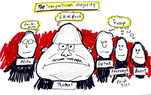 Най-лошият съдия в съвременната история на Върховния съдАтаката му срещу прогресивизма миналата седмица беше последната капкаПриятели, Отдавна приемам, че Самюъл Алито е най-лошият. Алито — който е автор на мнението на мнозинството по делото Dobbs срещу Jackson Women's Health Organization (2022 г.), делото, което сложи край на конституционните права за аборт, като просто твърди, че предишното становище на висшия съд по делото Roe срещу Wade (1973 г.) е било неправилно взето; който е приел луксозно риболовно пътуване до Аляска през 2008 г., включително пътуване с частен самолет, от милиардера на хедж фонда и донор от Републиканската партия Пол Сингър, но не е оповестил това във финансовите формуляри на Алито и дори не се е оттеглил от решения, свързани с последващия бизнес на Сингър пред Върховния съд; който е издигнал обърнато американско знаме пред дома си във Вирджиния малко след бунта в Капитолия на 6 януари, символ на подкрепа за фалшивите твърдения на Тръмп за откраднати избори през 2020 г. — има моралния и интелектуален статут на отровна жаба. Но дойдох да преразгледам мнението си за най-лошия съдия в съда. Кларънс Томас е на 77 години. Той е служил във Върховния съд повече от 34 години, което го прави най-дългогодишният член на съда. Той е огорчен, гневен, суров, крайнодесен, интелектуално нечестен идеолог. След като прочетох последните му мисли за Америка, стигнах до заключението, че Томас е дори по-лош от Алито. Миналата сряда Томас произнесе рядко публично обръщение в Тексаския университет в Остин, което започна като банална почит към Декларацията за независимост, преди да се изроди в подвеждаща лекция срещу прогресивизма. „В началото на двадесети век в американския мейнстрийм беше въведен нов набор от основни принципи на управлението“, интонирано отбеляза Томас. „Привържениците на този нов набор от основни принципи, най-вече двадесет и осмият президент Удроу Уилсън, го нарекоха прогресивизъм.“ Томас продължи да обвинява прогресистите за най-тежките престъпления на 20 -ти век, настоявайки, че „Сталин, Хитлер, Мусолини и Мао“ са били „преплетени с възхода на прогресивизма“, както и „расовата сегрегация“, „евгениката“ и други злини. Това са чисти глупости. В действителност, прогресивната ера на Америка се появи в началото на 20-ти век от корупцията и ексцесиите на първата позлатена епоха на Америка (сега сме във втората, ако не сте забелязали) - рекордните неравенства в доходите и богатството, „бароните-разбойници“, които монополизираха индустриите и раздаваха чували с пари на послушните законодатели, опасните фабрики и небезопасните условия на труд, насилствените нападения срещу работници, които се опитваха да сформират синдикати, корпоративния контрол върху всички аспекти на управлението, широко разпространената бедност и болести и корумпираните партийни машини. В много отношения, Прогресивната ера - чийто най-виден лидер беше републиканският президент Теодор Рузвелт, а не Удроу Уилсън, между другото - спаси капитализма от собствените му ексцесии, като въведе прогресивен данък върху доходите, данък върху наследството, закони за чисти храни и лекарства и първите закони в Америка срещу корпоративното влияние в политиката. След това, при петия братовчед на Теди Рузвелт (Франклин Д.), се появиха социалното осигуряване, 40-часовата работна седмица (с в